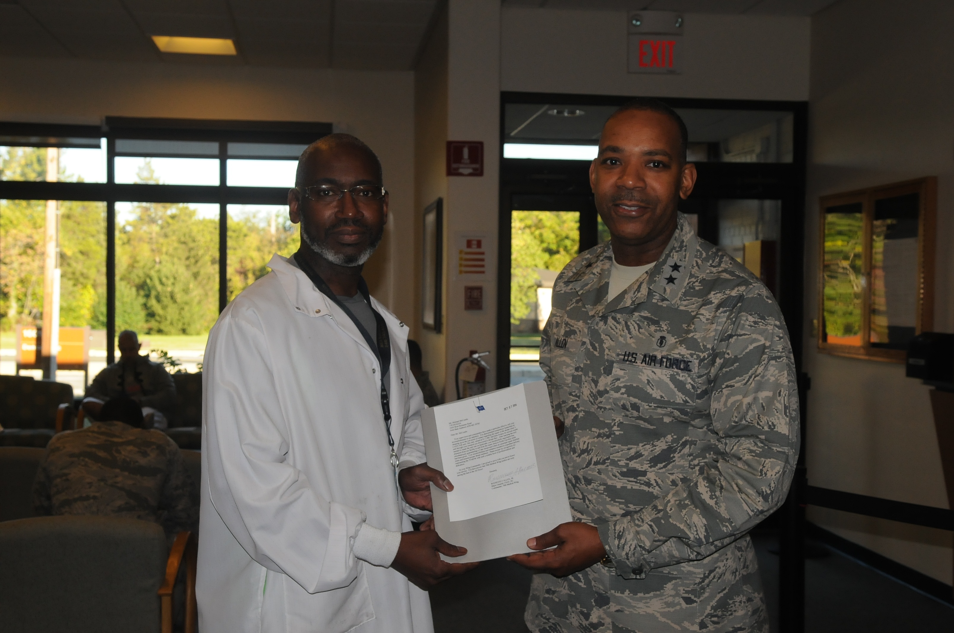 Mr. Michael McCombs, lab technician for the 779th Medical Group Dental Squadron received a Star Note from Maj. Gen. Roosevelt Allen, 79 Medical Wing (MDW) Commander. A STAR Note is a 79 MDW recognition program for outstanding enlisted, officers and civilians within the 79 MDW organization. Maj. Gen. Allen presents a note and coin to an outstanding staff member for a sustained or singularly distinctive contribution once a month.