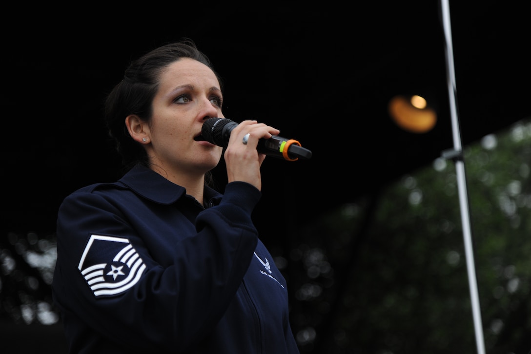 Master Sgt. Emily Wellington, U.S. Air Force Band singing sergeant, sings at the Sylvan Theatre, June 3, 2015. Members of the U.S. Air Force Band’s Concert Band and Singing Sergeants performed a concert at the Sylvan Theatre, District of Columbia, near the Washington Monument. (U.S. Air Force photo/ Airman 1st Class J.D. Maidens)