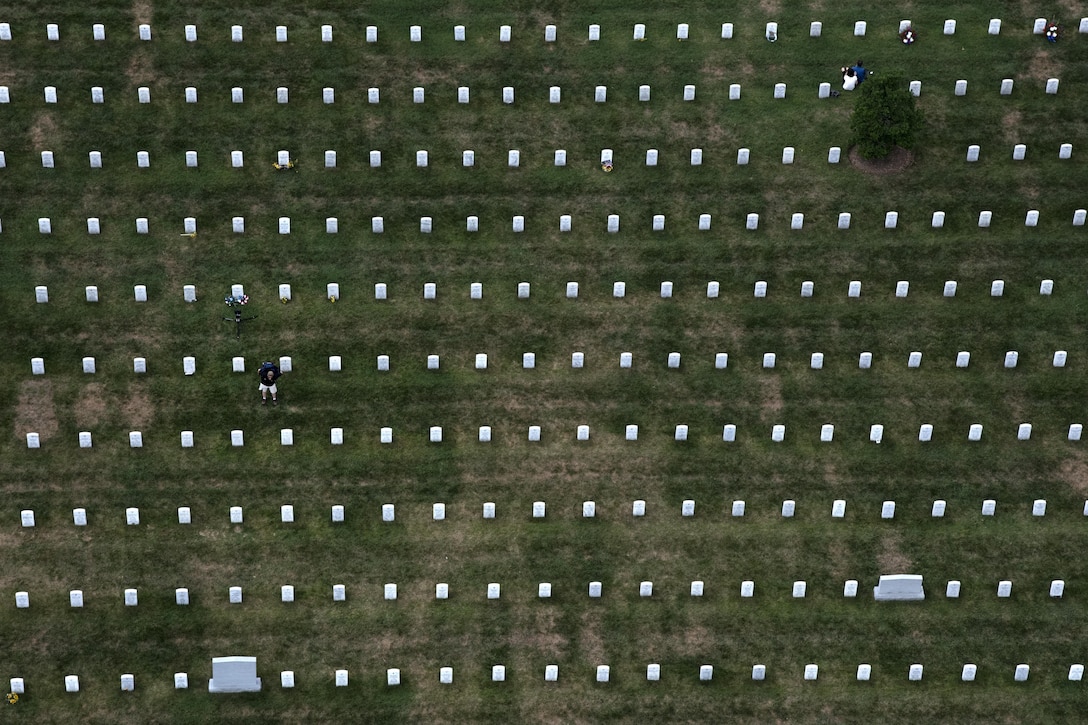 An aerial view of Arlington National Cemetery, Arlington, Va., from a 1st Helicopter Squadron UH-1N Huey helicopter Aug. 3, 2016. Arlington National Cemetery funeral flyovers is one of the many missions the 1st HS supports in the National Capital Region. (U.S. Air Force photo by Airman 1st Class Philip Bryant)