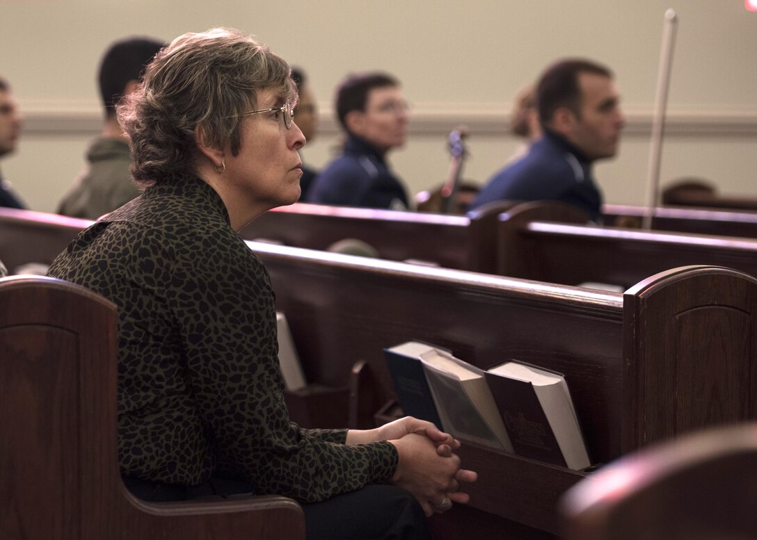 An audience member listens to Dr. Alfred Münzer, Holocaust survivor, speak during the Holocaust Commemoration at Joint Base Andrews, Md., April 26, 2017. During the Holocaust and separation from his family, Münzer was cared for by a Dutch-Indonesian family. He was eventually reunited with his mother and the two subsequently moved to the U.S. (U.S. Air Force photo by Senior Airman Jordyn Fetter)