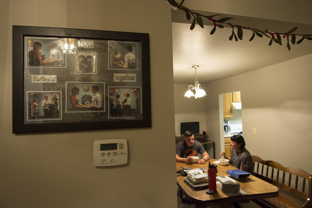 Airman 1st Class Jose Velazquez, U.S. Air Force Honor Guard firing party member, and Samantha Velazquez, Jose’s spouse, eat dinner in their home at Joint Base Anacostia-Bolling, District of Colombia, April 14, 2017. Samantha was born an American citizen and when the two got married five years ago, Jose became a resident of the country which allowed him to join the Air Force. (U.S. Air Force photo by Senior Airman Philip Bryant)