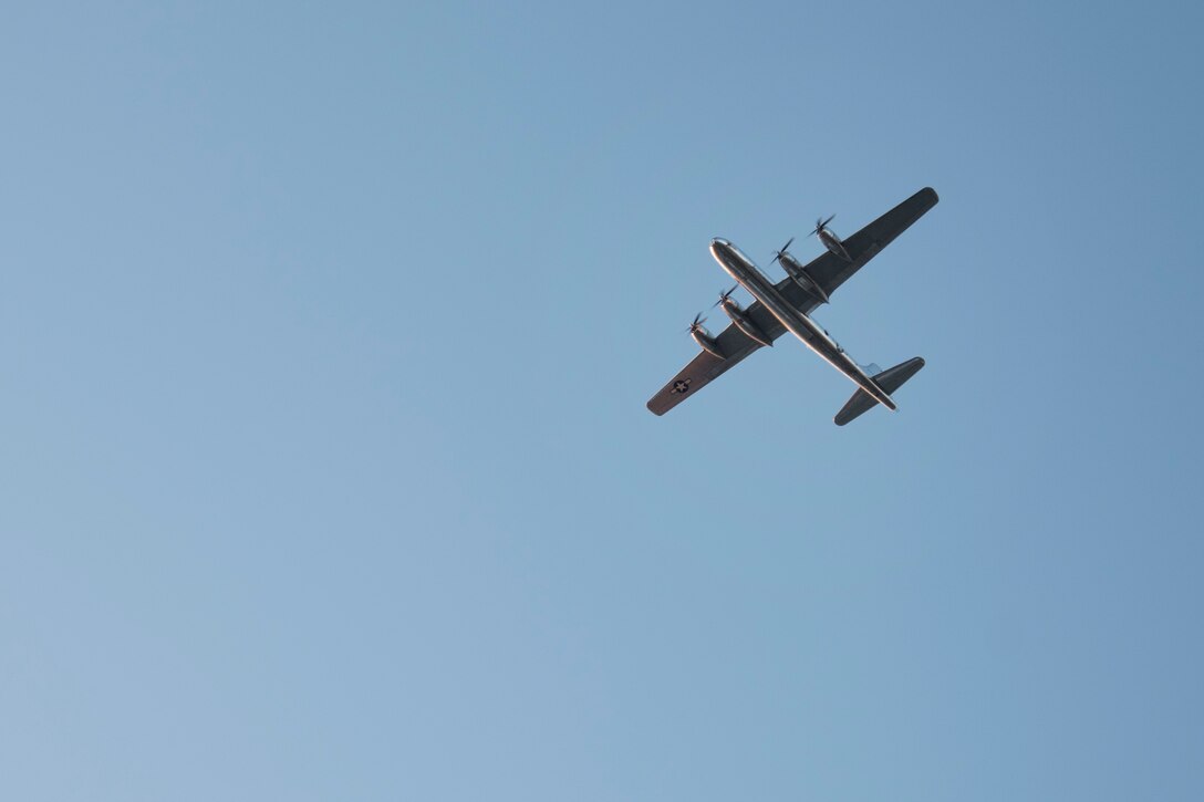 A B-29 Superfortress, nicknamed Doc, flies over the U.S. Air Force Tattoo at Joint Base Anacostia-Bolling, Washington, D.C., Sept. 13, 2017. The tattoo featured aerial performances from the U.S. Air Force Thunderbirds, Experimental Aircraft Association Warbirds of America, and heritage flight. (U.S. Air Force photo by Airman 1st Class Valentina Lopez)