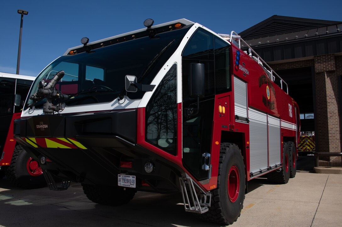 One of two new fire trucks sit on display outside of Fire Station 2 at Joint Base Andrews, Md., March 1, 2024. These new trucks replaced fire trucks that were over 30 years old. (U.S. Air Force photo by Senior Airman Daekwon Stith)