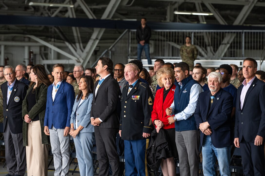 “Valor Tour” members join guests of the Medal of Honor event at Joint Base Andrews, Md., March 20, 2025. The team of six Medal of Honor recipients works to represent the legacy of 3,528 fellow recipients since the award’s inception in 1861. (U.S. Air Force photo by Airman 1st Class Patrick Njuguna)