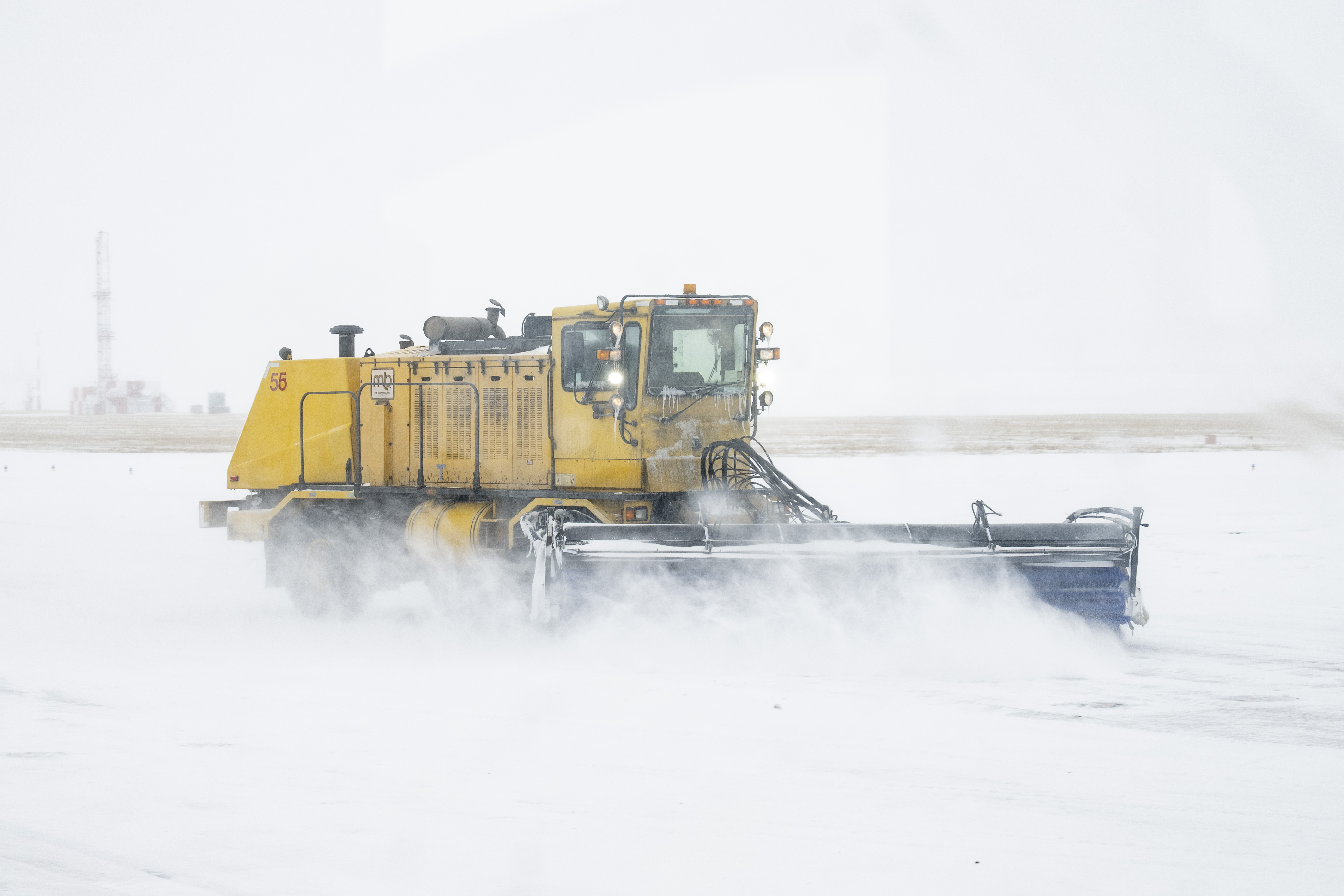 U.S. Airmen assigned to the 316th Civil Engineer Squadron conduct snow removal operations at Joint Base Andrews, Maryland, Jan. 25, 2026. Team Andrews prepared for potential severe weather by monitoring the situation, providing safety information to the community and readying contingency operations. (U.S. Air Force photo by Senior Airman Julia Lebens)